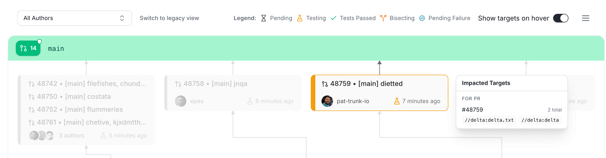 The Get Testing Details API now returns impacted target information, giving CI systems everything they need to launch the right tests. Previously, teams using impacted targets had to piece together information from multiple API calls to figure out which targets a PR affects and which tests to run. Now a single API call returns impacted targets alongside queue position, dependent PRs, and batch membership, so your CI can make informed decisions about test scope without extra round-trips.