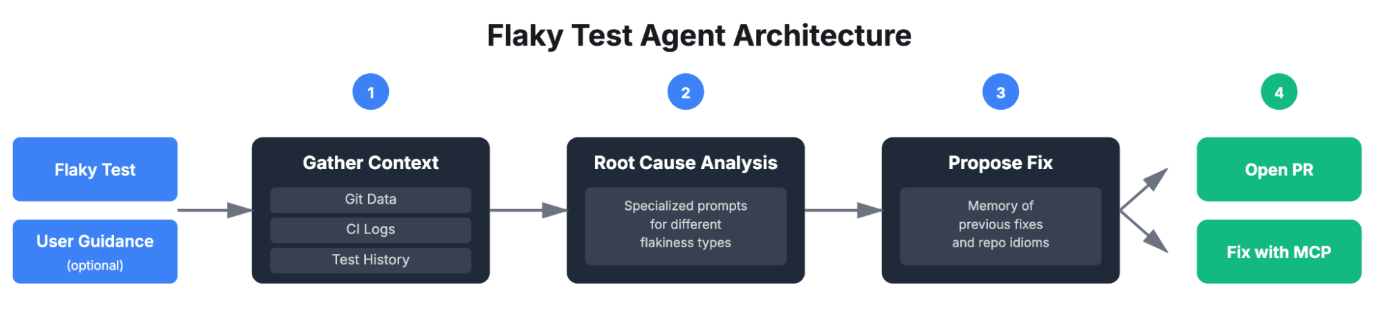 We built sub-agents that extract insights from CI and git data, then expose those insights via MCP to any compatible coding tool. When you ask Claude Code to fix a flaky test, it can pull our analysis: