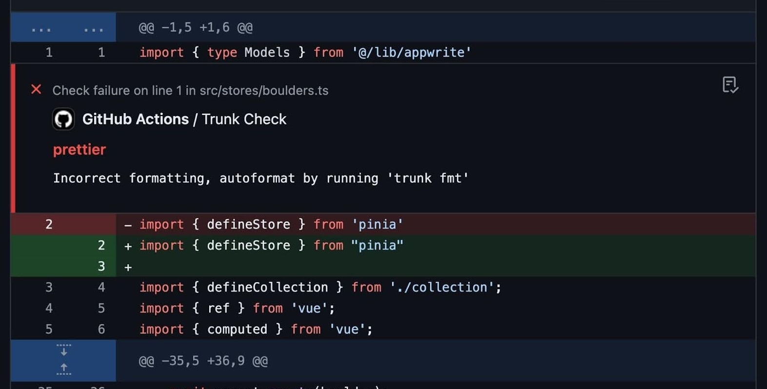 Trunk Code Quality is a metalinter. It’s a way to configure and run all the linters with one tool and get consistent output. Think of it as a much more advanced take on GitHub’s Superlinter project. It runs in more than just GitHub Actions. It runs hermetically, as a command line tool, and has many more advanced features. It can run locally and integrate with VSCode.