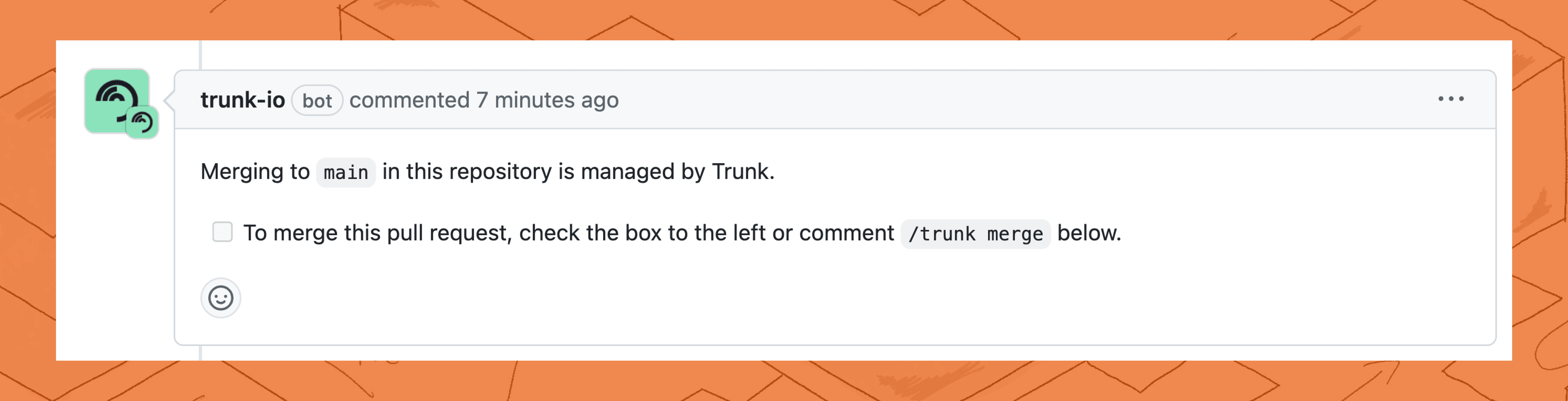 /trunk-mergecomment on the PR in GitHubInteracting with the GitHub bot in a PR by checking the provided merge box